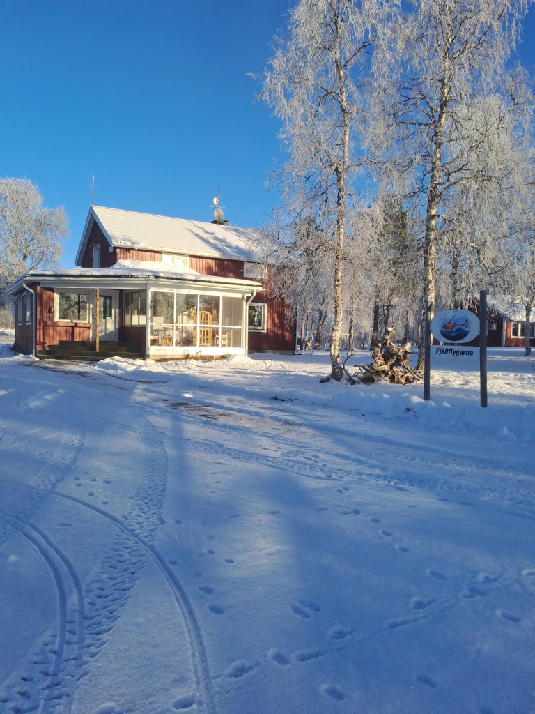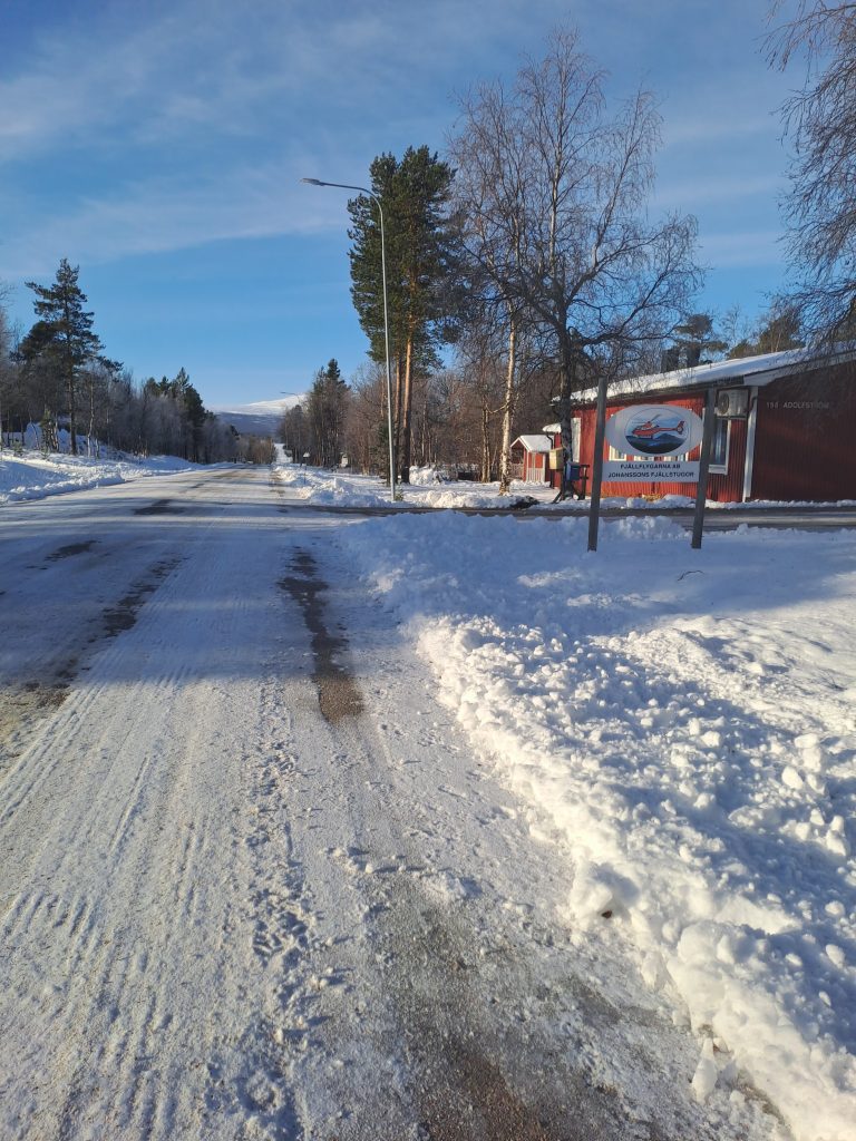 Minus 6 grader. Dom flesta sjöarna är frusna. Man skall ändå vara försiktig vid isfärd. Ingen garanti att isen är stadig för att det finns tidigare spår på den.